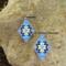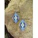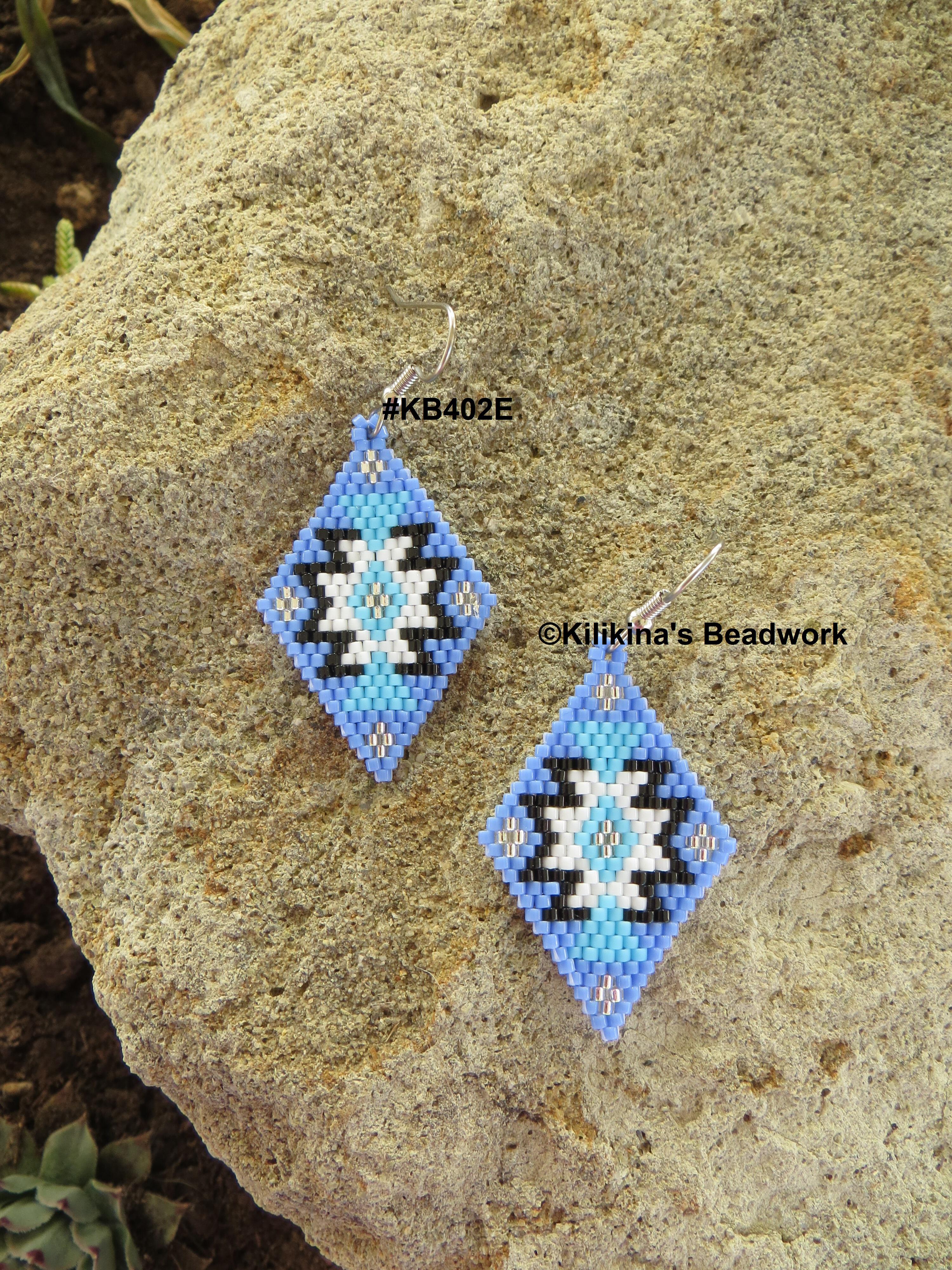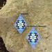 These Navajo Rug earrings are made of Delica seed beads - they measure about 1" wide and about 1 3/4" long (not including the hooks). These measurements are estimated. The beadwork is hand sewn. These earrings are currently on stainless steel fishhooks. The fishhooks can be changed to posts or clips if requested. Buyer must request the change by message, before or when the item is purchased, as for I need to make any changes before packing and/or shipment.