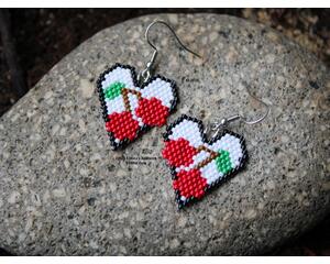 Beaded Heart Earrings, Beaded Cherry Earrings, Seed Beaded Ch...