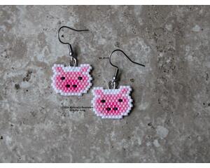 Beaded Pig Earrings, Seed Beaded Pig Earrings, Native America...